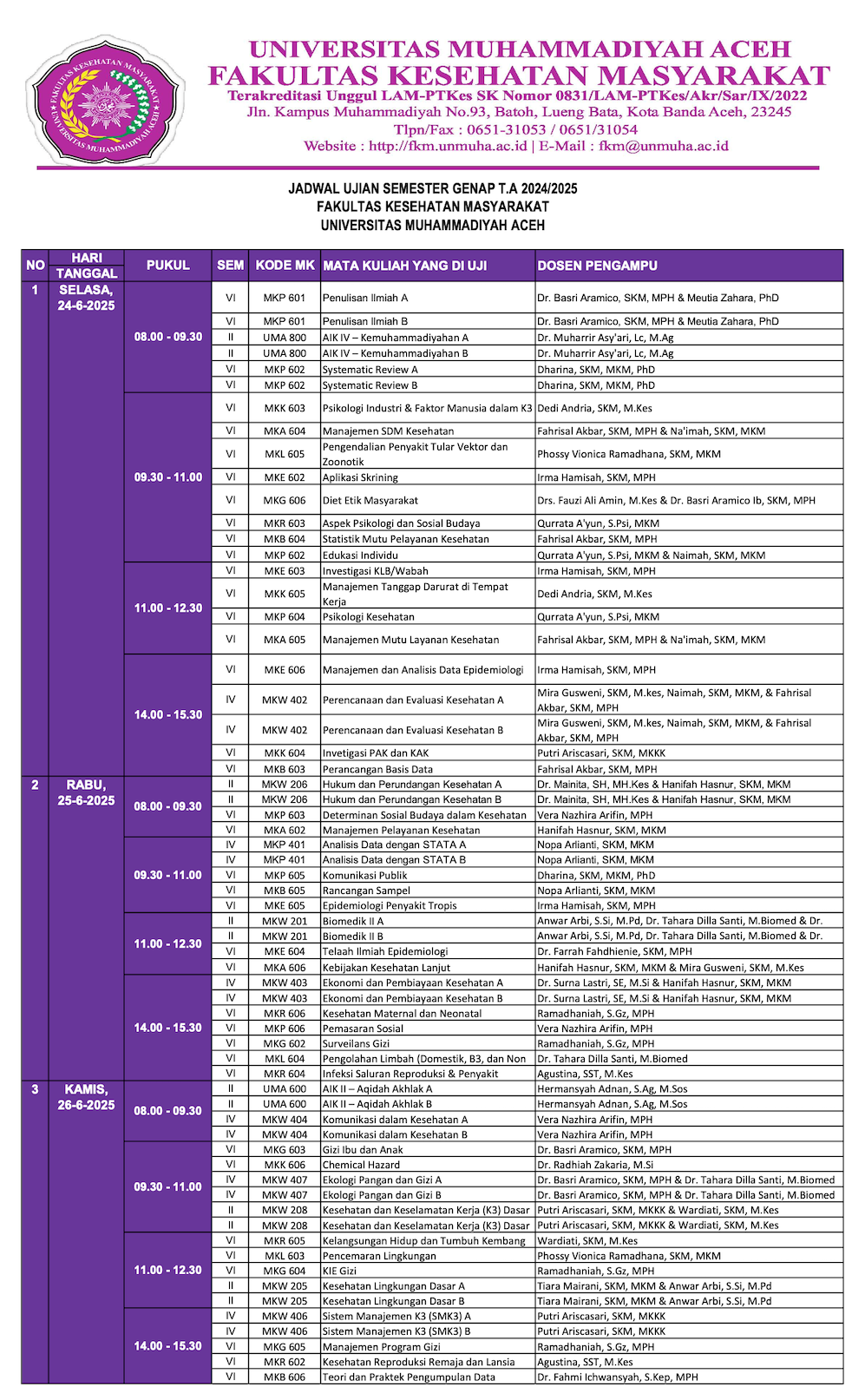 Untuk mendownload roster ujian semester genap TA 2024/2025 silahkan klik disini.